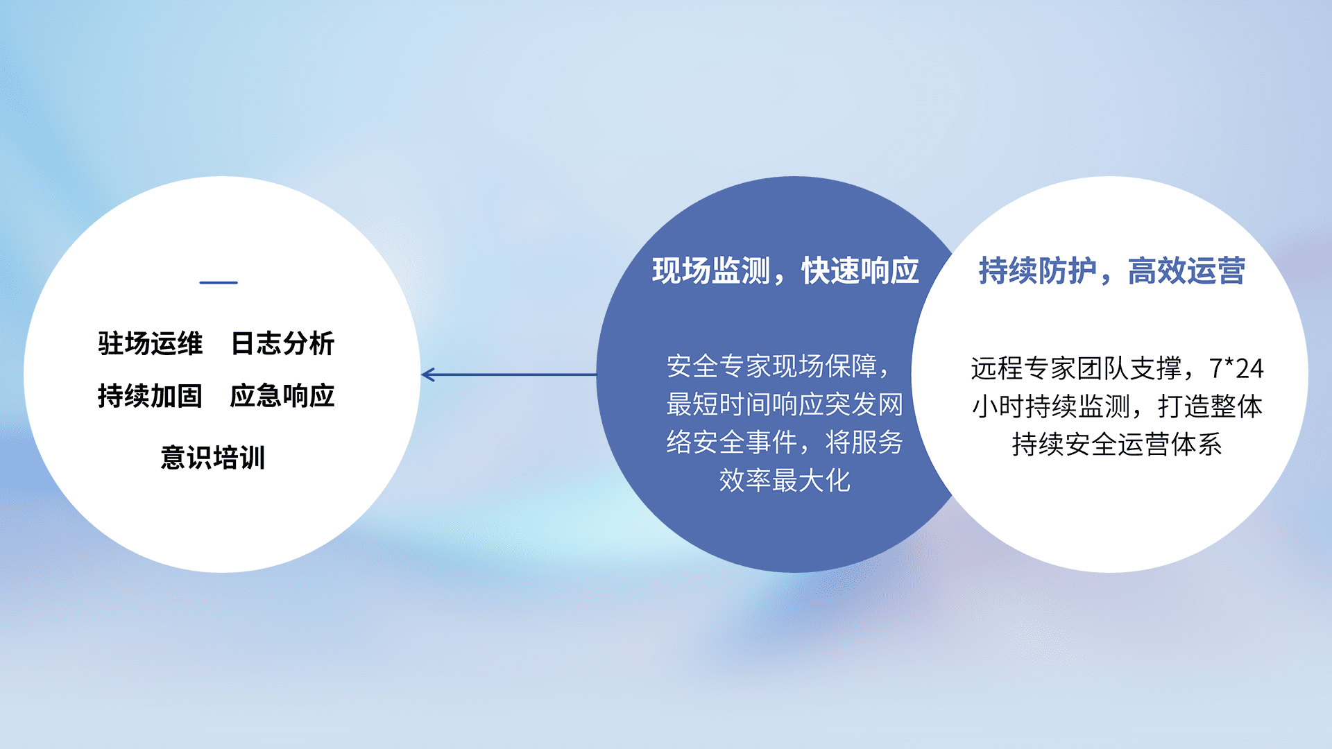 针对客户行业特性,,提供专属的一站式安全管理服务,,,帮助客户全面感知网络空间威胁,,,通过安全专家的线上、、、线下防护支持,,,实现风险闭环,,,将安全保障常态化,,,为客户打造常态化安全运维运营服务。。